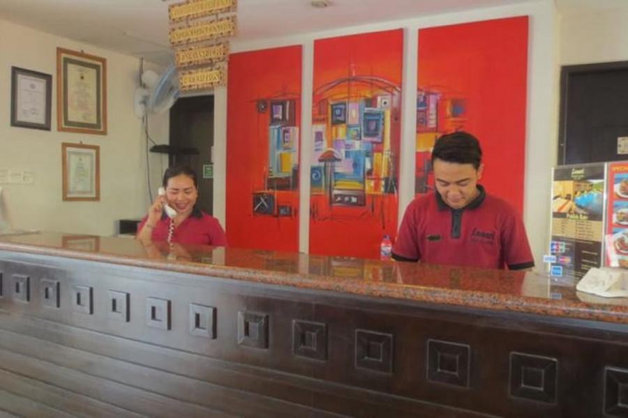 櫃台服務人員會接待旅客入住。